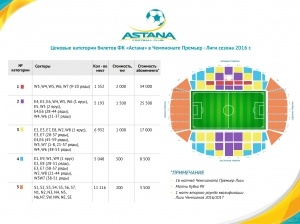 Также в продажу поступят абонементы на весь сезон и их стоимость составит от 3500 до 34000 тенге. В стоимость абонемента входит посещение 16 матчей Премьер Лиги, всех домашних матчей Кубка Казахстана, а также посещение матча первой игры 2 квалификационного раунда Лиги Чемпионов.