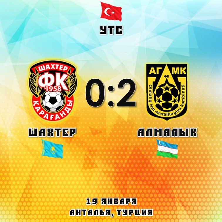 Карагандинский «Шахтер» провел второй контрольный матч на учебно-тренировочном сборе в Турции. В роли спарринг-партнера «горняков» выступил узбекистанский «Алмалык», который по итогам минувшего сезона занял седьмое место в чемпионате страны. Стоит отметить, что эту команду возглавляет хорошо известный карагандинским болельщикам Виктор Кумыков. Товарищеская игра началась с минуты молчания в память о узбекистанцах, погибших при пожаре автобуса в Актюбинской области.