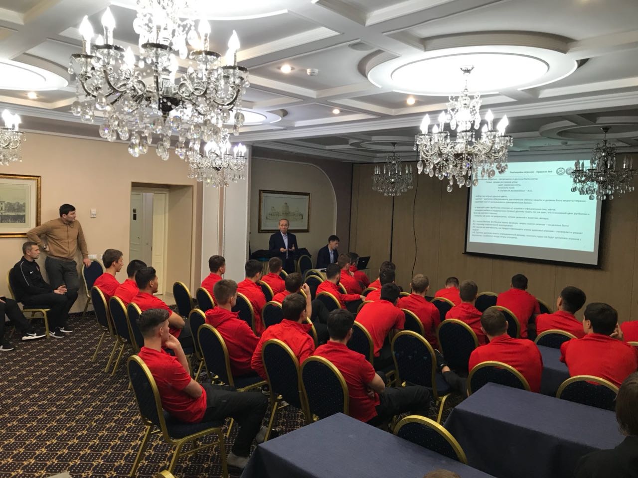 9 марта в конференц-зале гостиницы "Казжол" прошел семинар по новым правилам ФИФА. Перед шахтерской дружиной выступили лекторами Национальный судья Высшей категории, инспектирующий матчи Премьер-лиги Багдат Тусеев, а также судья Первой категории Георгий Чеховский, которые наглядно на примерах показали изменения в правилах по футболу.