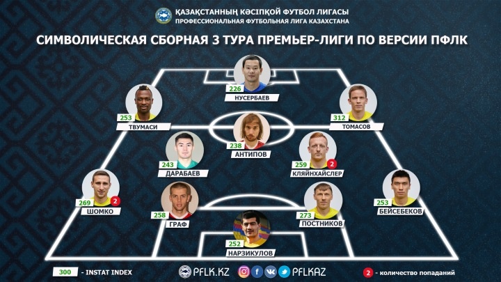 Центральный защитник «Астаны» Постников стал лучшим центральным защитником тура. Евгений хорошо проявил себя в борьбе – 12 единоборств выиграно внизу (эффективность - 71%), 6 единоборств - вверху (эффективность - 86%). Помимо этого Постниковым совершено 5 отборов. Индекс действий – 273.