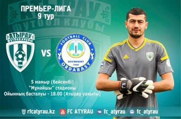 Матч 9-го тура чемпионата Казахстана между командами "Атырау" и "Ордабасы" состоится в ближайший четверг, 5 мая. Игра пройдет на центральном стадионе "Мунайшы". Время начала встречи – 18:00 по местному времени (19:00 времени Астаны).