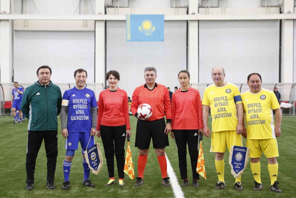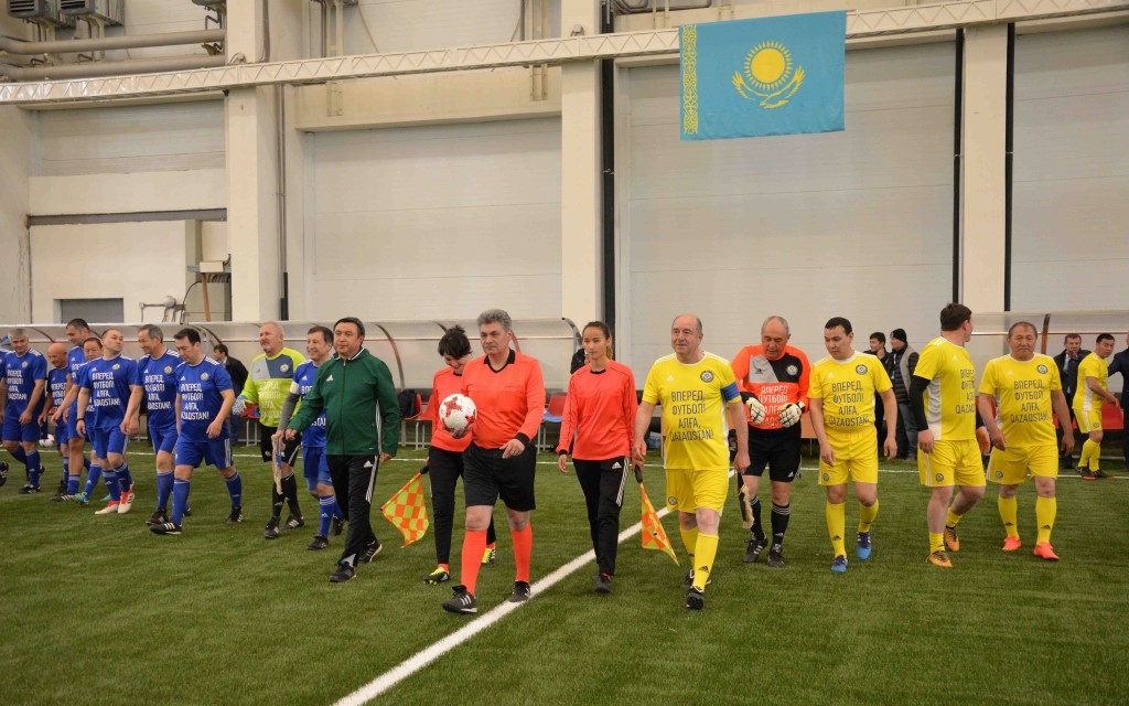 Участники Очередной XVII Конференции Казахстанской Федерации футбола после завершения мероприятия приняли участие в товарищеской игре, которая была сыграна на футбольном поле манежа Дома футбола.