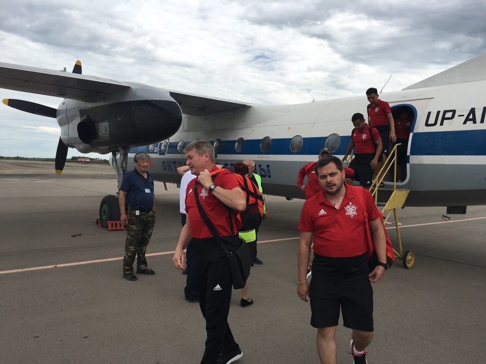 После двух с половиной часов полёта самолёт с командой приземлился в аэропорту Петропавловска. Вечерняя тренировка запланирована на 18.00 местного времени.