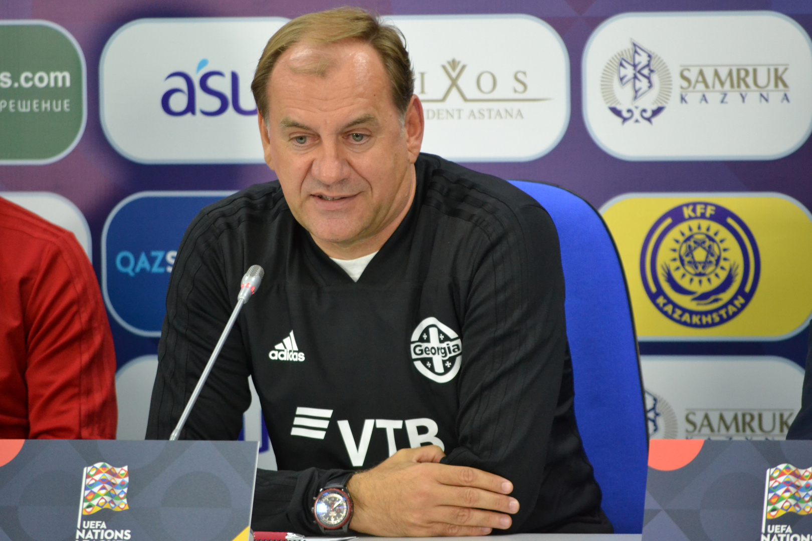 - Касательно газона, он отличный тут не может быть и речи. Он позволит команде играть в хороший футбол. У нас есть свой стили игры и у Казахстана тоже есть свой стиль. Поэтому посмотрим какой стиль завтра возьмет вверх. Конечно, не все футболисты готовы, но мы должны выставить такой состав, который сможет играть качественно в обороне так и в атаке. Это первая игра в Лиге Наций. Каждое очко важно в этом турнире. Посмотрим какая из команд завтра будет умнее, какая будет хитрее та и выиграет. Я уверен, что мы сможем добиться успеха.