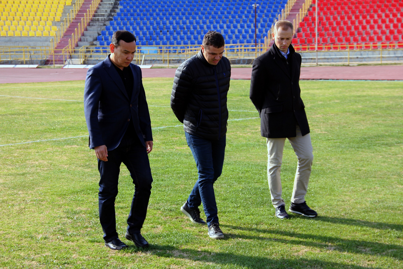 В конце прошлой недели Центральный стадион им. Кажымукана посетила делегация, составляющая оргкомитет матча. В ее состав вошли Президент ПФЛК Олжас Абраев, представители Акимата г. Шымкент, городского Управления спорта, руководство футбольных клубов «Ордабасы», «Кайрат» и «Атырау». Также по приглашению Лиги оценку состояния газона на арене вынес один из ведущих спортивных агрономов Казахстана Виктор Яроменко, известный в Казахстане по успешной работе с алматинским «Кайратом».