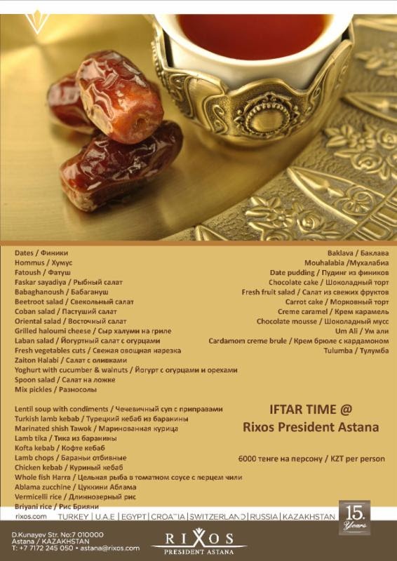 Dear friends! We are happy to invite you to Iftar time buffet dinner at Ristorante L'Olivo from 6th of June till 5th of July. 6000 KZT per person