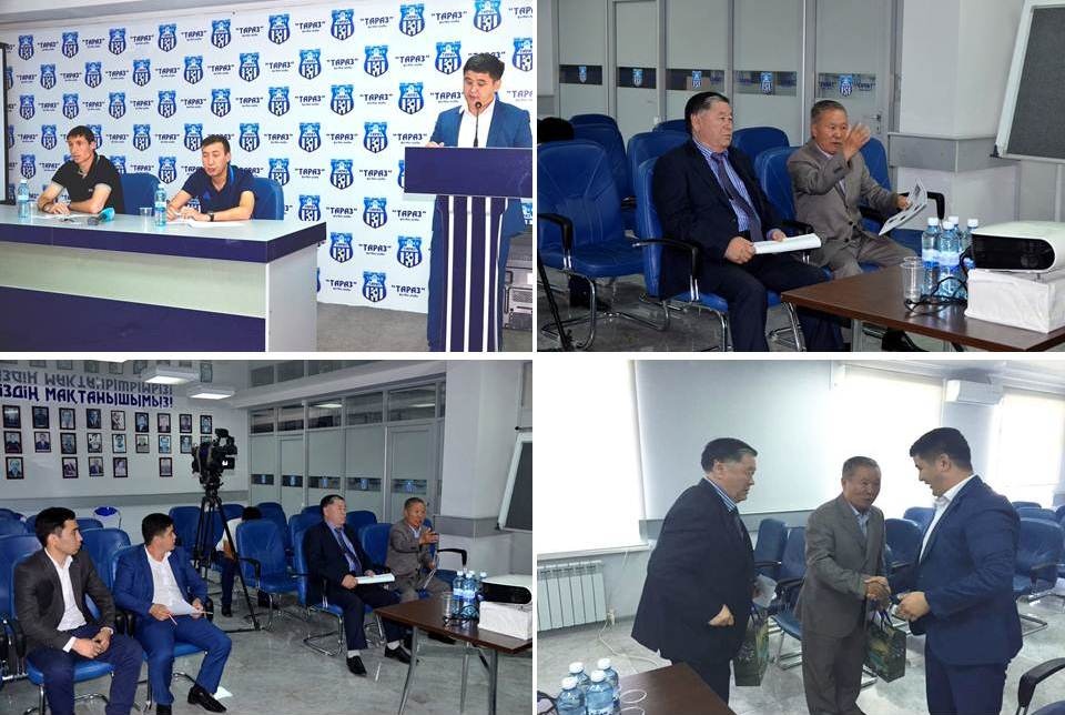 «Тараз» футбол клубы базасын аралап көріп, оң бағасын берген ардагерлер футбол клубы ұйымдастырған жиынға қатысты. Кездесуге «Тараз» футбол командасының аға жаттықтырушысы Ерлан Елеусінов пен команда капитаны Виталий Евстигнеев шақырылды. Алдымен, келген қонақтарға «Тараз» футбол клубының кешегісі мен бүгінгісі тақырыбында баяндама жасалды. Одан кейін қонақтар көкейлерінде жүрген сауалдарын жолдады. Ардагерлер клуб ұжымына алдағы уақытта жас футболшыларды командаға көптеп тартуға, шапшаңдықты арттырып, өз туған жерінің футболын өркендетуге, ат салысуға шақырды. Шынында, «Тараз» футболы қай кезеңде болмасын еліміздегі алдыңғы қатарлы ұжымдардың бірі болған. Оның айғағы осы өңірден Байшақов, Яровенко, Литвиненко сынды атақты футболшылардың шығуы. Тіпті, күні кеше гол соғудан рекорд жасаған Нүркен Мазбаев пен Мұрат Тілешов сынды ойыншылар Жамбыл футболының өкілі. Жиын соңында ардагерлер «Тараз» футбол клубының басшылығына алғысын білдіріп, футболшыларға алдағы ойында тек жеңіс тіледі.