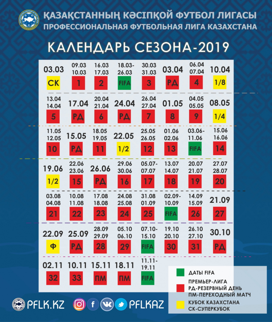 ПФЛК представила проект календаря Премьер-лиги и Кубка Казахстана