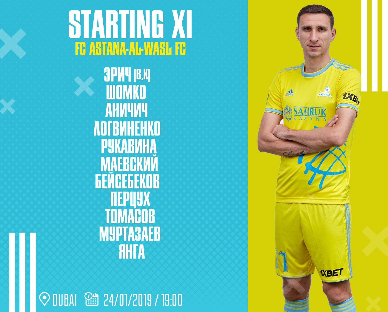 Стартовый состав "Астаны" на матч против "Аль-Васла"