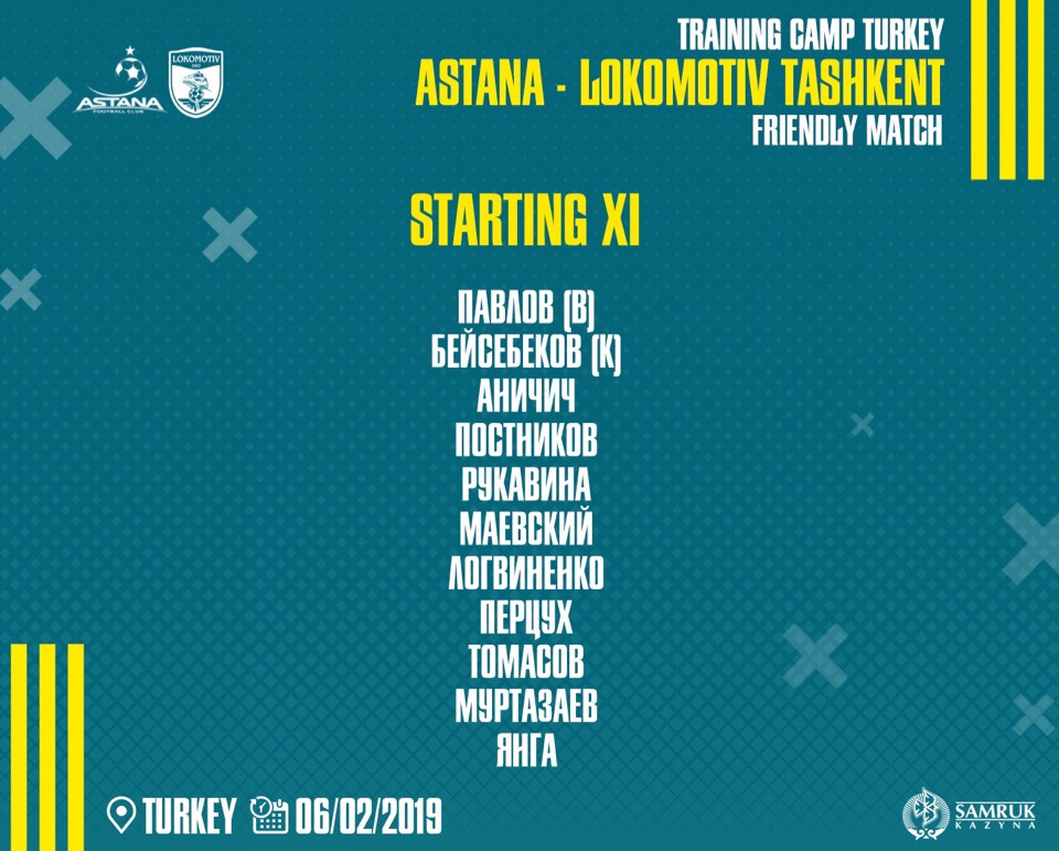 Стартовый состав "Астаны" на матч против "Локомотива"