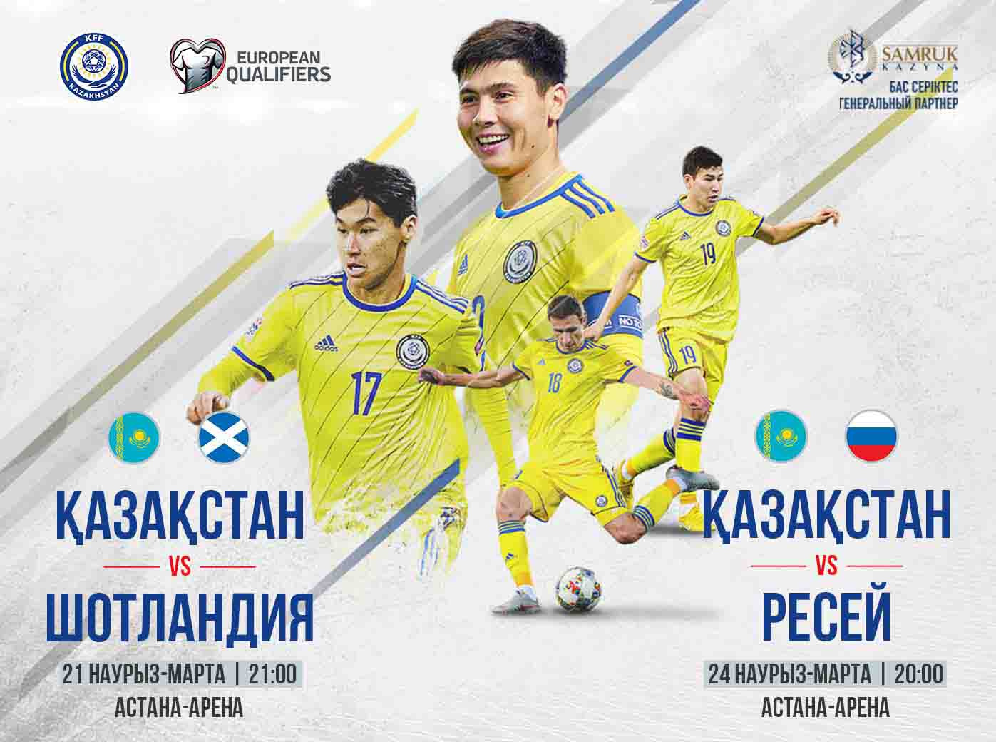 Матч Казахстан - Шотландия состоится 21 марта в Астане на стадионе «Астана Арена». Начало встречи в 21:00.