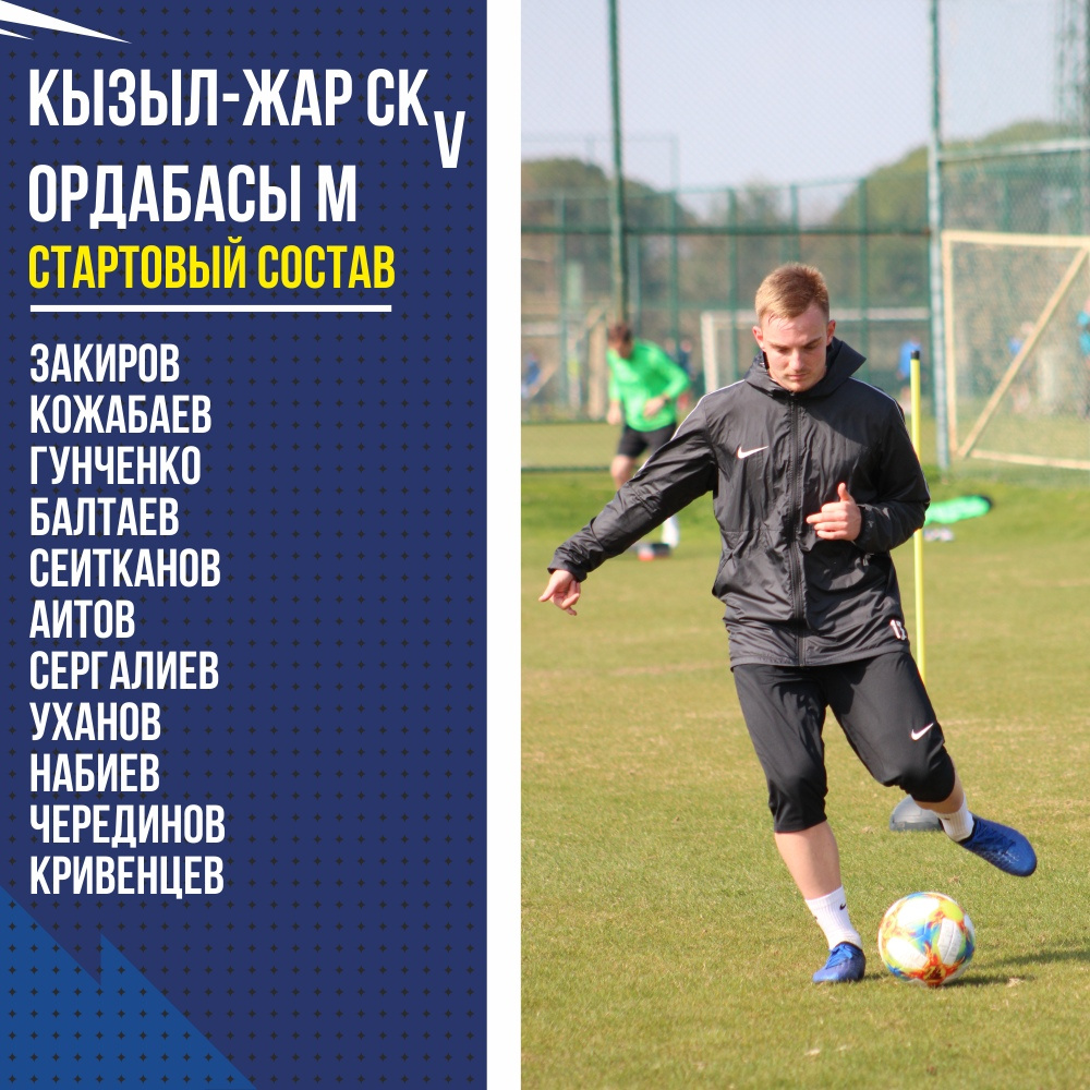 Стартовый состав "Кызыл-Жар СК" на матч против "Ордабасы М"