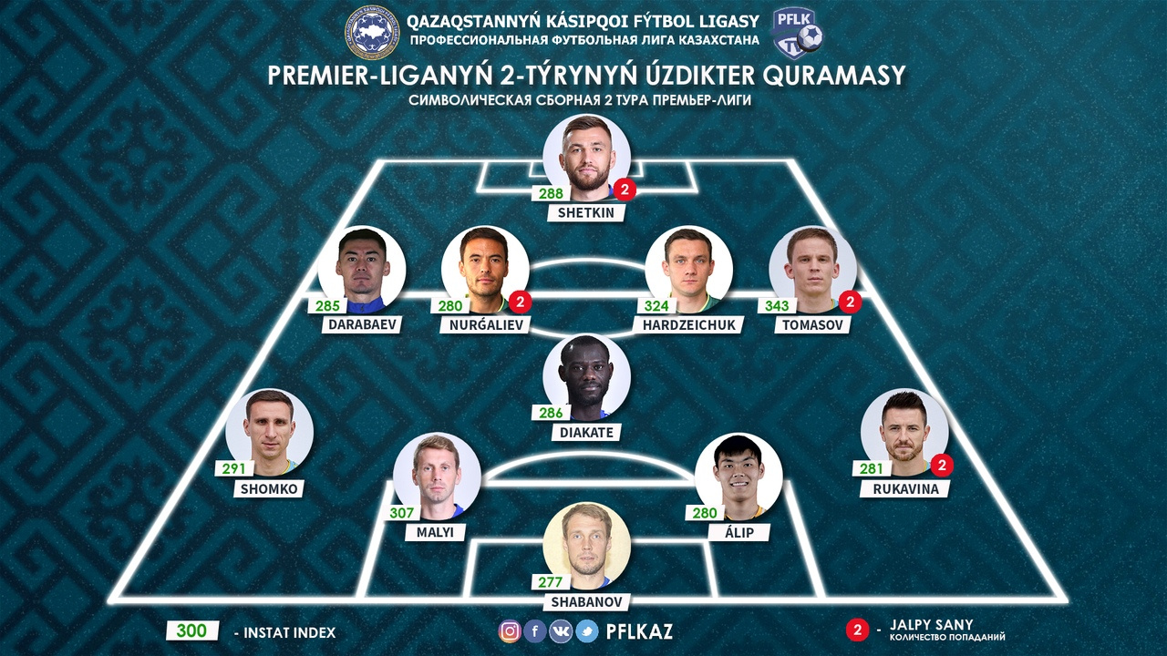 Лучшим стражем ворот второго тура можно по праву считать голкипера «Жетысу» Андрея Шабанова, который отстоял на «ноль» в Кызылорде. В общей сложности он отбил 5 ударов, совершил 3 спасения и 5 раз безупречно вышел из ворот (100% показатель). Индекс действий – 277.