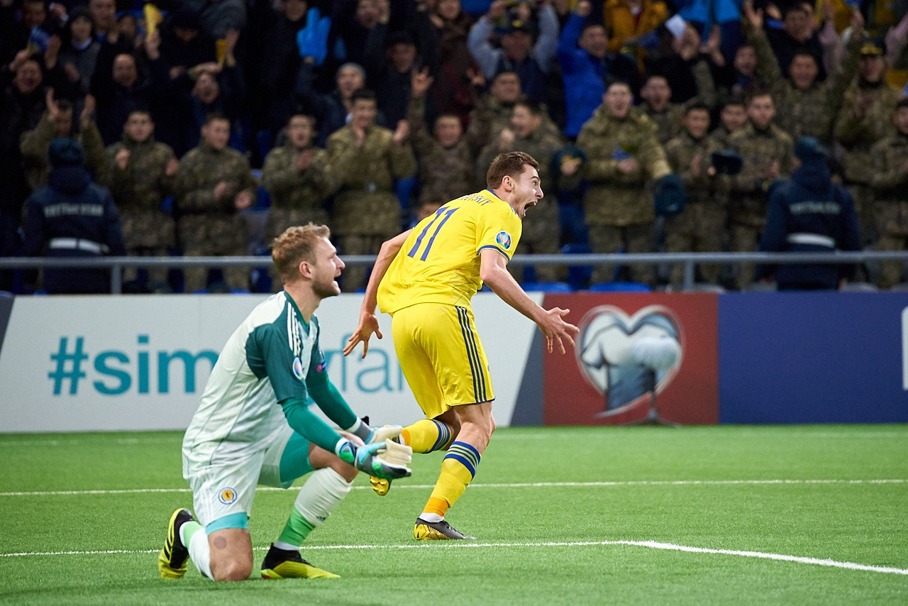 "Казахстан выходит на Евро-2020. Вместе со сборной Кипра. На данный момент расклад в группе I именно такой. Понятно, что это не больше чем сиюминутная забавность, однако из пока еще Астаны пришла не менее грустная новость, чем из Брюсселя. Пока Россия проигрывала в Бельгии, Казахстан громил Шотландию (3:0). И громил по делу. Кого стоит опасаться в составе следующего соперника сборной России – в материале «Спорта День за Днем».