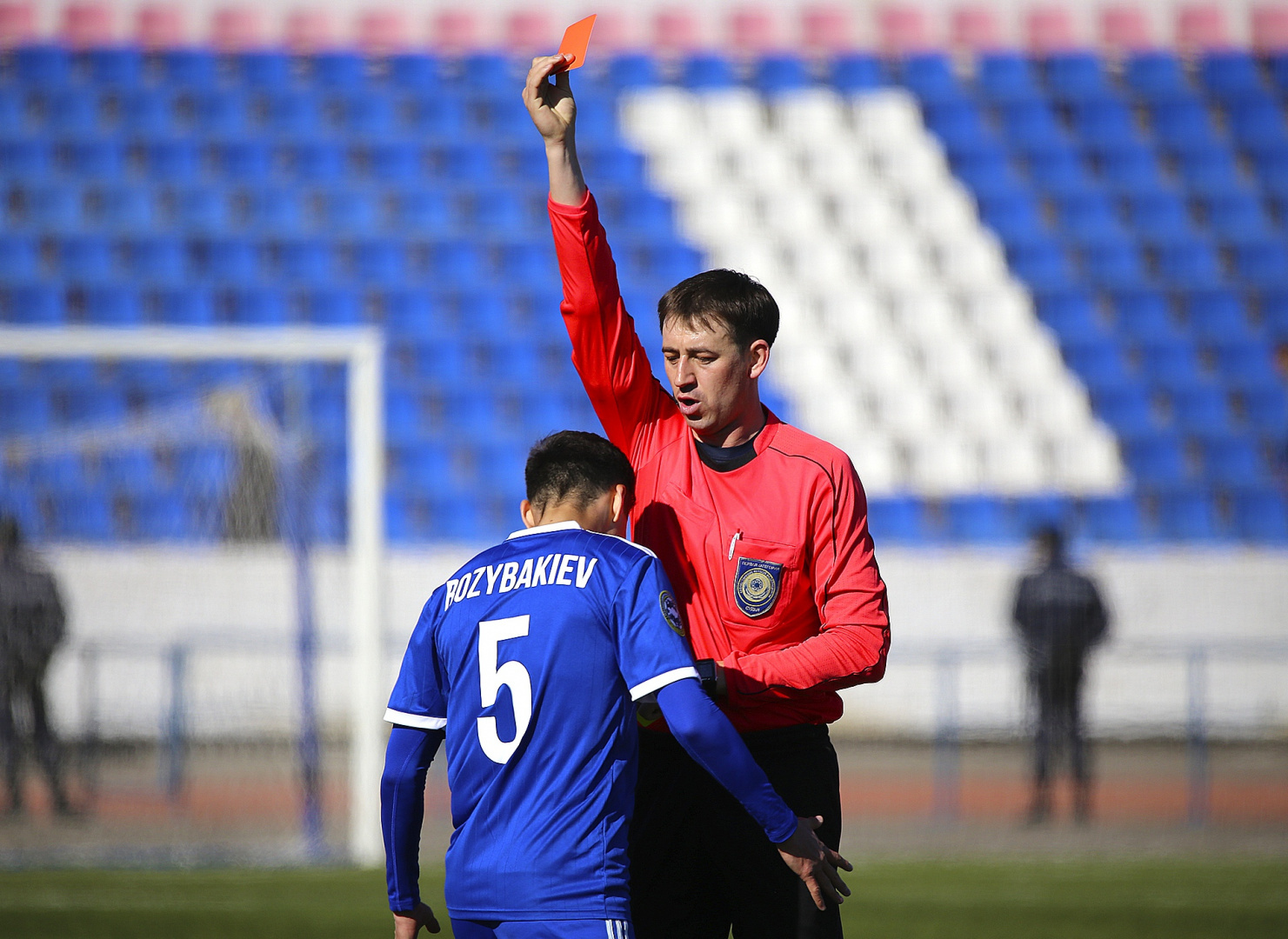 За оскорбительное поведение в отношении официального лица матча, выразившееся в неспортивном поведении, а именно в толчке плечом в грудь официального лица матча и нецензурные выражения в адрес него, в соответствии со статьей 53 Дисциплинарного регламента игрока ФК «Тараз» Рахимжана Розыбакиева дисквалифицировать на три месяца во всех соревнованиях под эгидой КФФ и ПФЛК. Срок дисквалификации считать с 11 апреля 2018 года.