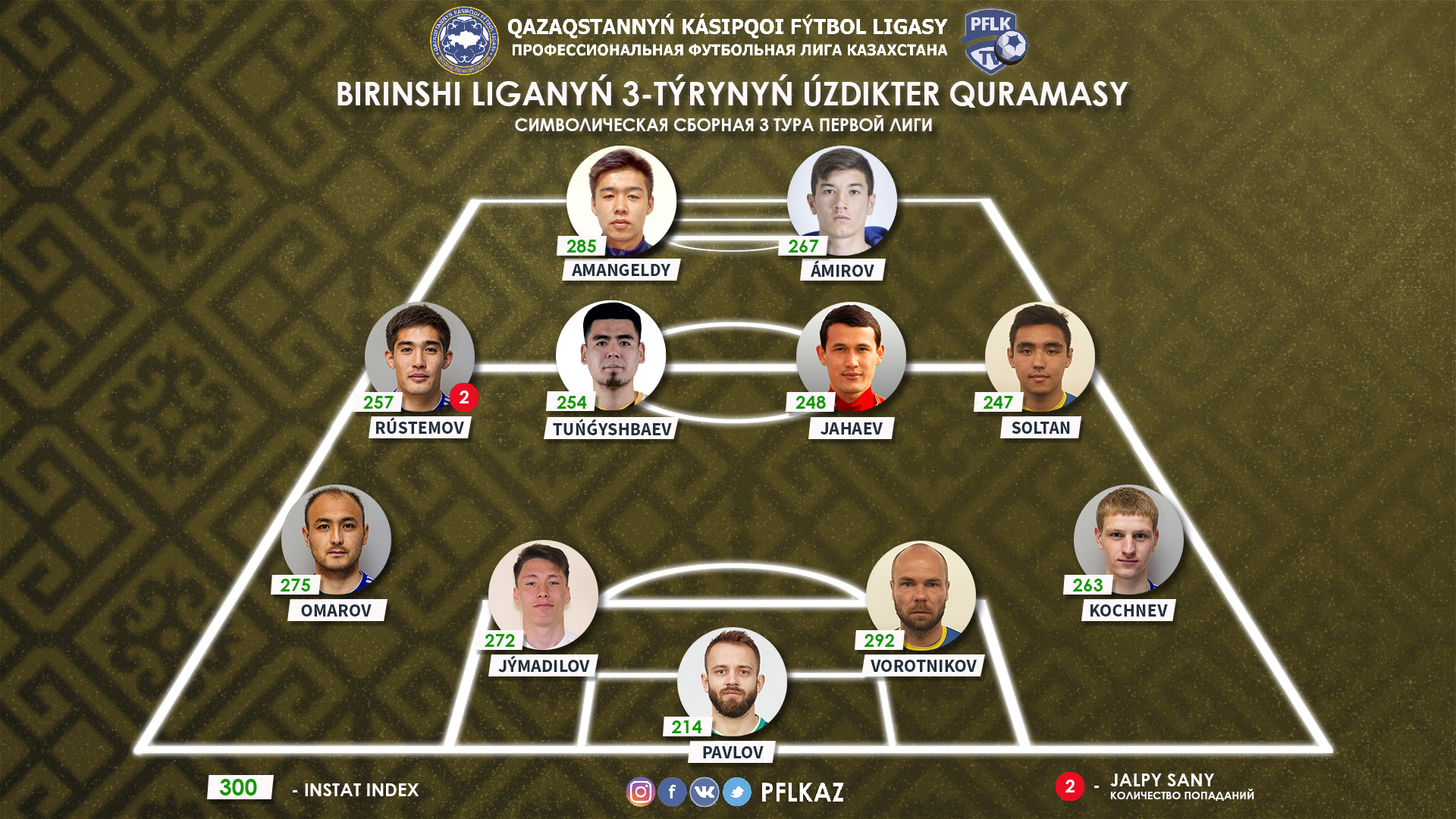 Опытный Воротников завершил игру с «Жетысу Б» с отличным показателем полезности как у своих, так и у чужих ворот. Защитник отметился победным голом, 88% точности пасов, 93% успешных единоборств и выигранным подчистую «воздухом» - 7 из 7. Индекс действий – 292.