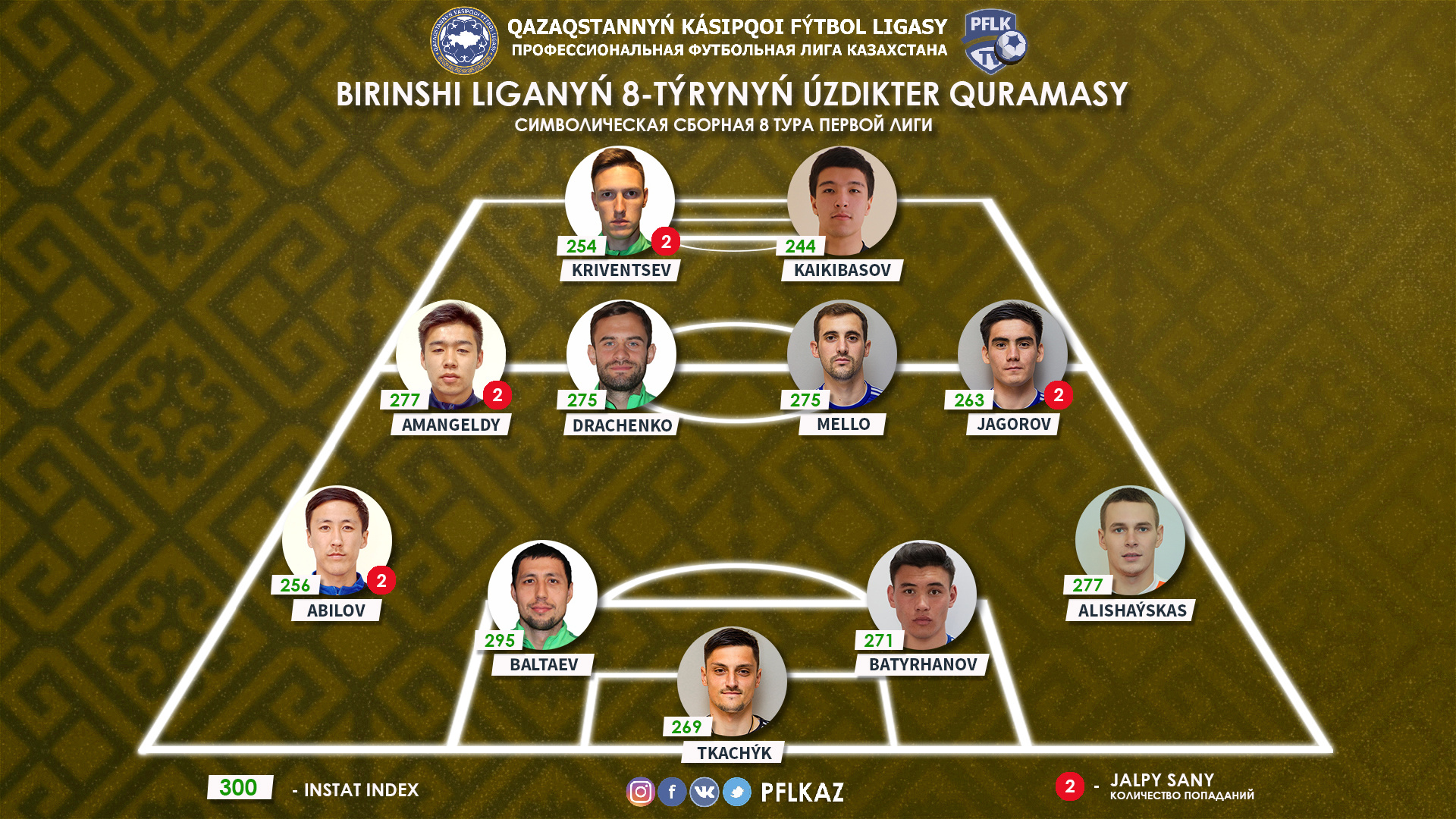 Нападающие: Павел Кривенцев, «Кызыл-Жар СК»; Даурен Кайкибасов, «Алтай»