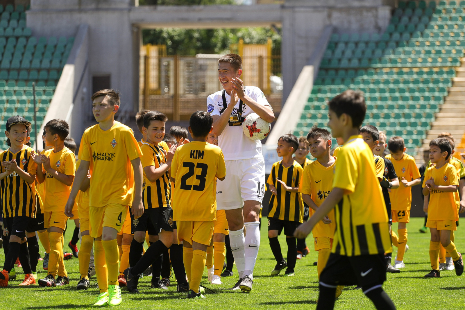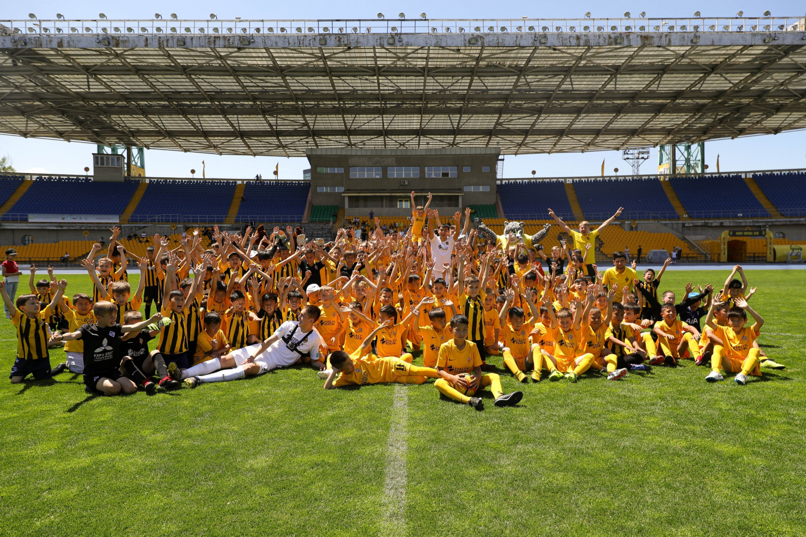"В рамках товарищеского матча, пять игроков "Кайрата" сыграли против 173 юных футболистов. Огромной армии детей в желто-черной форме противостояли Данил Устименко, Нуралы Алип, Айбол Абикен, Нурдаулет Агзамбаев и Марлен Айманов. Их у кромки поля поддерживали Бауыржан Исламхан, Адеринсола Эсеола и Султанбек Астанов.