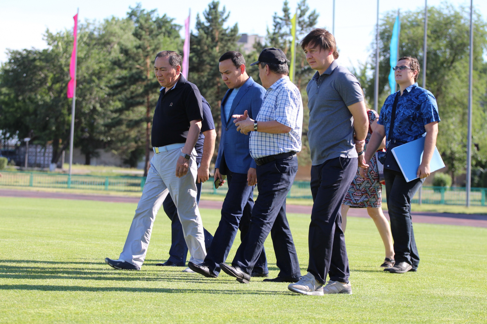 Также Руководитель ПФЛК проинспектировал запасное поле стадиона «Жетысу», где свои матчи проводят команды «Жетысу Б» и «Жетысу М», выступающие в Первой и Второй лигах соответственно, и проходят соревнования среди футбольных центров и академий. Искусственное покрытие находится в эксплуатации уже четвертый год и все это время оно подвергалось высоким нагрузкам, что сказалось на игровых кондициях. По итогам осмотра талдыкорганскому клубу было рекомендовано произвести замену газона. На основании полученных отчетов, совместная Комиссия по допуску полей Казахстанской федерации футбола и Профессиональной футбольной лиги Казахстана приняла решение запретить проведение матчей Премьер-лиги на запасном поле стадиона «Жетысу».
