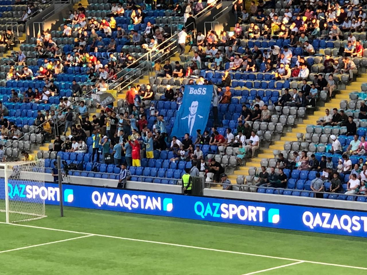 На баннерах фанатов столичной команды изображен бывший главный тренер "Астаны" Станимир Стоилов и надпись "Сохраните наши традиции".
