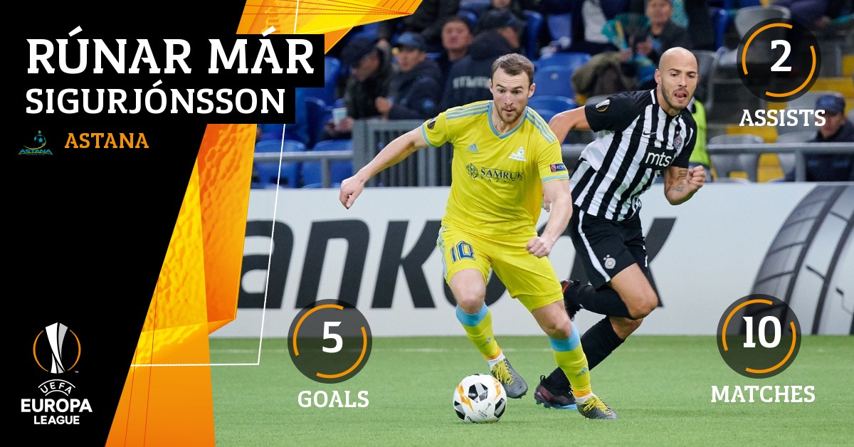 Рунар Сигурьонссон вошел в ТОП-5 бомбардиров "Астаны" в еврокубках