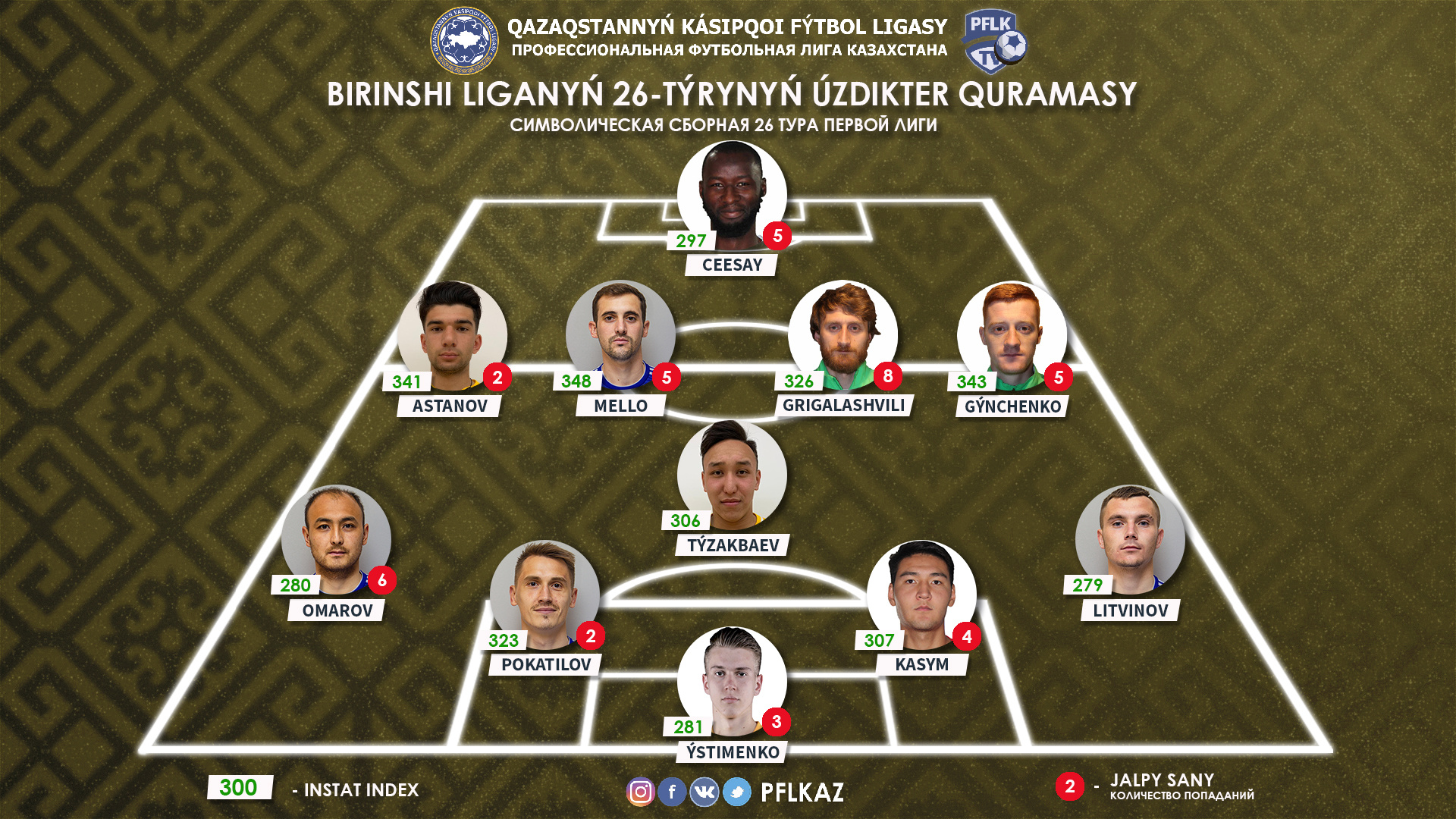 Атакующие полузащитники: Джакомо Мелло, «Акжайык»; Шота Григалашвили, «Кызыл-Жар СК»