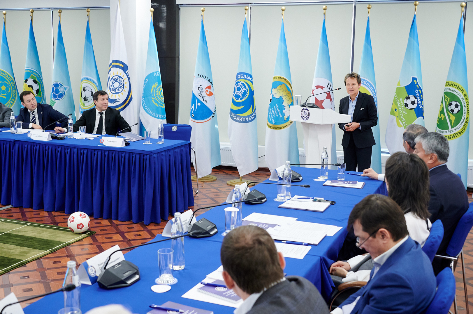 В ней, в частности, приняла участие глава департамента международных отношений УЕФА Ева Паскье. В своем выступлении представитель Европейского Союза футбольных ассоциаций отметила, что не в первый раз приезжает в нашу страну и видит положительные сдвиги в развитии самой популярной игры в Казахстане.