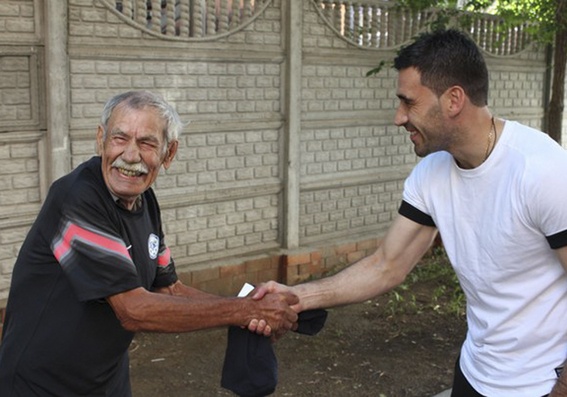 При поддержке вратаря сборной Казахстана Давида Лория, фанаты подарили Анатолию Дмитриевичу продуктовую корзину, абонемент на матчи «Иртыша» и эксклюзивную футболку проекта «19 сектор». Но самым памятным подарком для пенсионера стала игровая футболка Давида Лория, полученная из рук любимого футболиста!