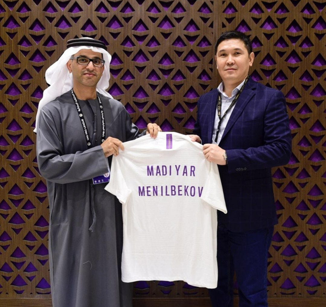Мадияру Менилбекову была подарена именная футболка "Аль-Айна" из рук доктора Матара Аль Дармаки.