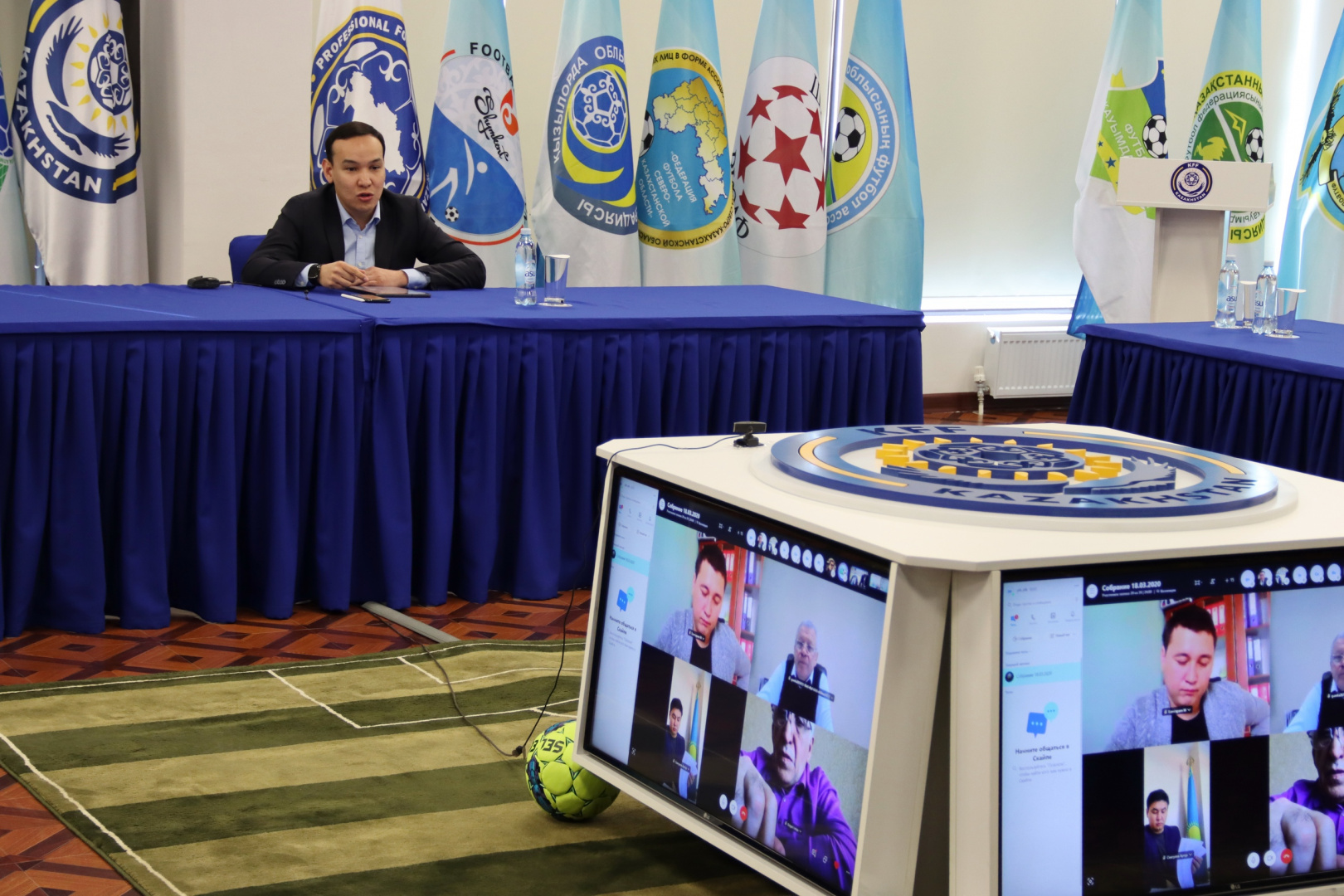 В старте интернет-встречи руководитель ПФЛК Олжас Абраев поделился с членами Лиги решениями, принятыми на состоявшейся накануне конференции УЕФА, а также доложился по принимаемым мерам в европейских национальных чемпионатах.