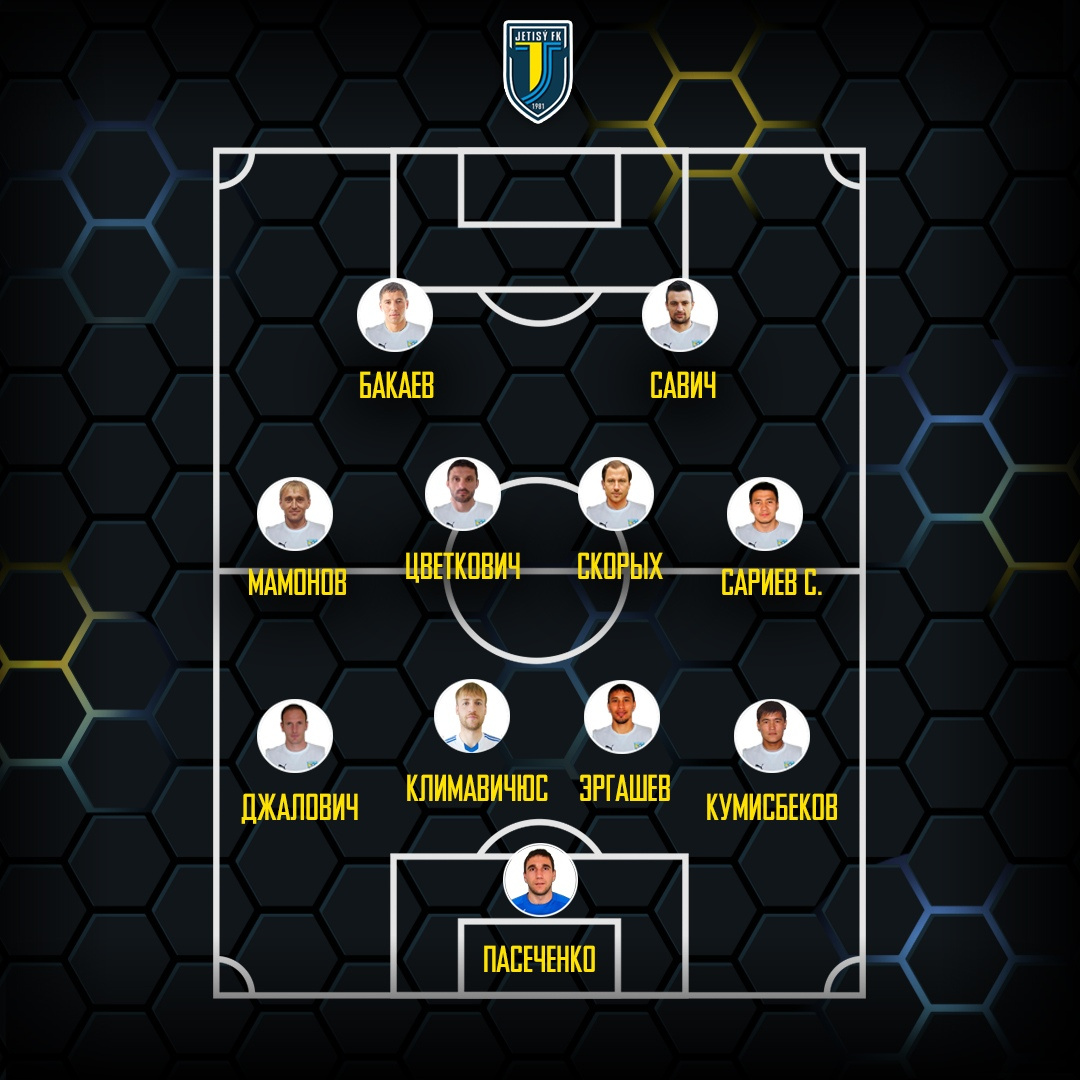 Андрей Пасеченко (В) - Марко Джалович, Давронжон Эргашев, Арунас Климавичюс, Айдар Кумисбеков - Дмитрий Мамонов, Иван Цветкович, Сергей Скорых, Саят Сариев - Душан Савич, Улугбек Бакаев.