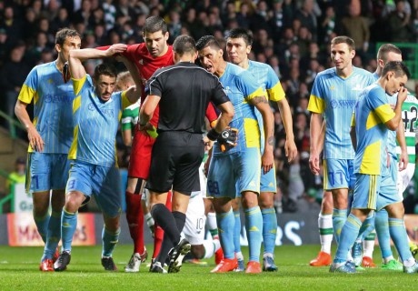 "Астана" в матче с "Селтиком" заработала 9 желтых и 2 красных карточки