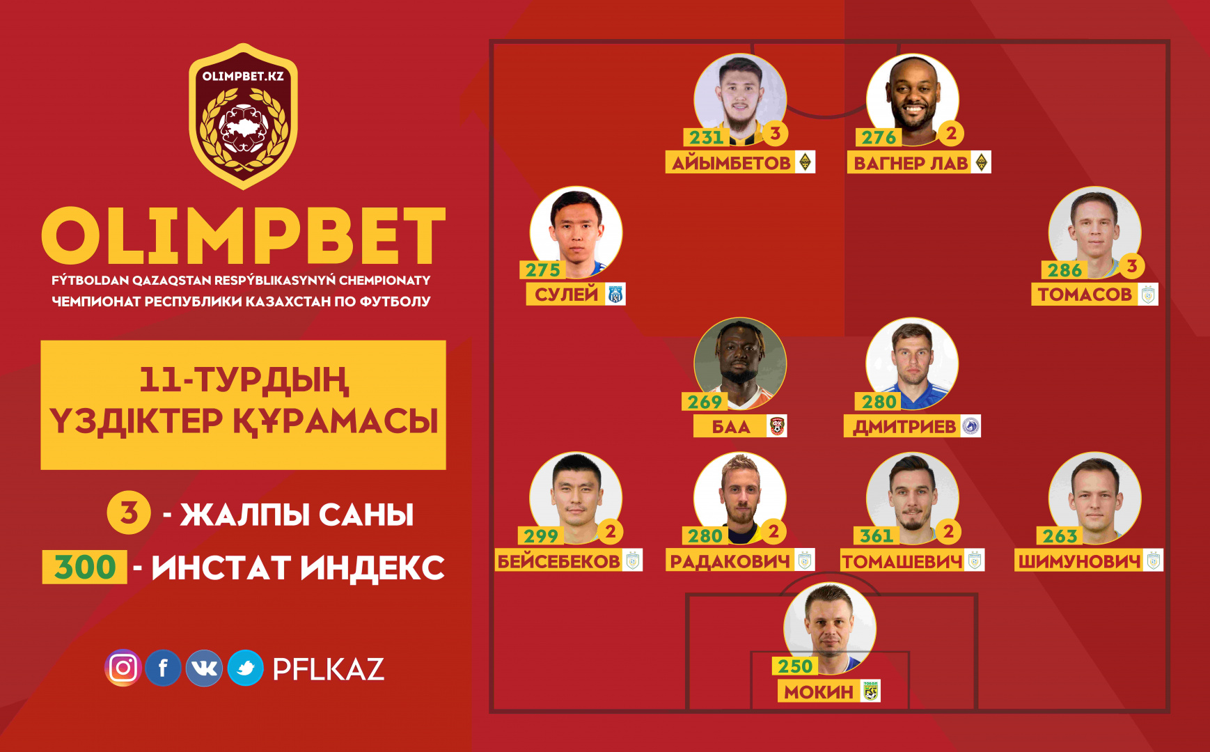 Нападающие: Вагнер Лав, «Кайрат»; Абат Аймбетов, «Кайрат»;