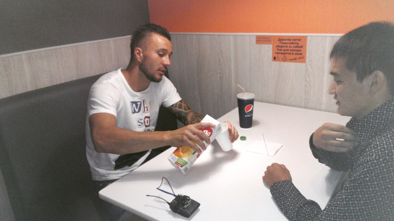 Закончилась работа псевдо-заправщика тем, что он выбрал одного из посетителей АЗС в свою компанию для ужина в Додо-пице. Им стал Чингиз. Вместе с футболистом они провели время в кафе за разговорами о футболе.