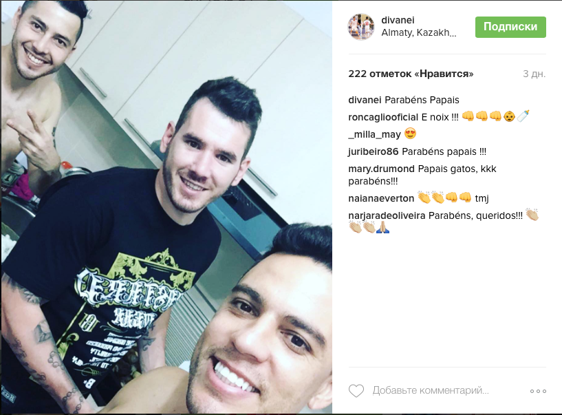 Диваней и Эвертон поздравляют Ронкальо со скорым появлением малыша