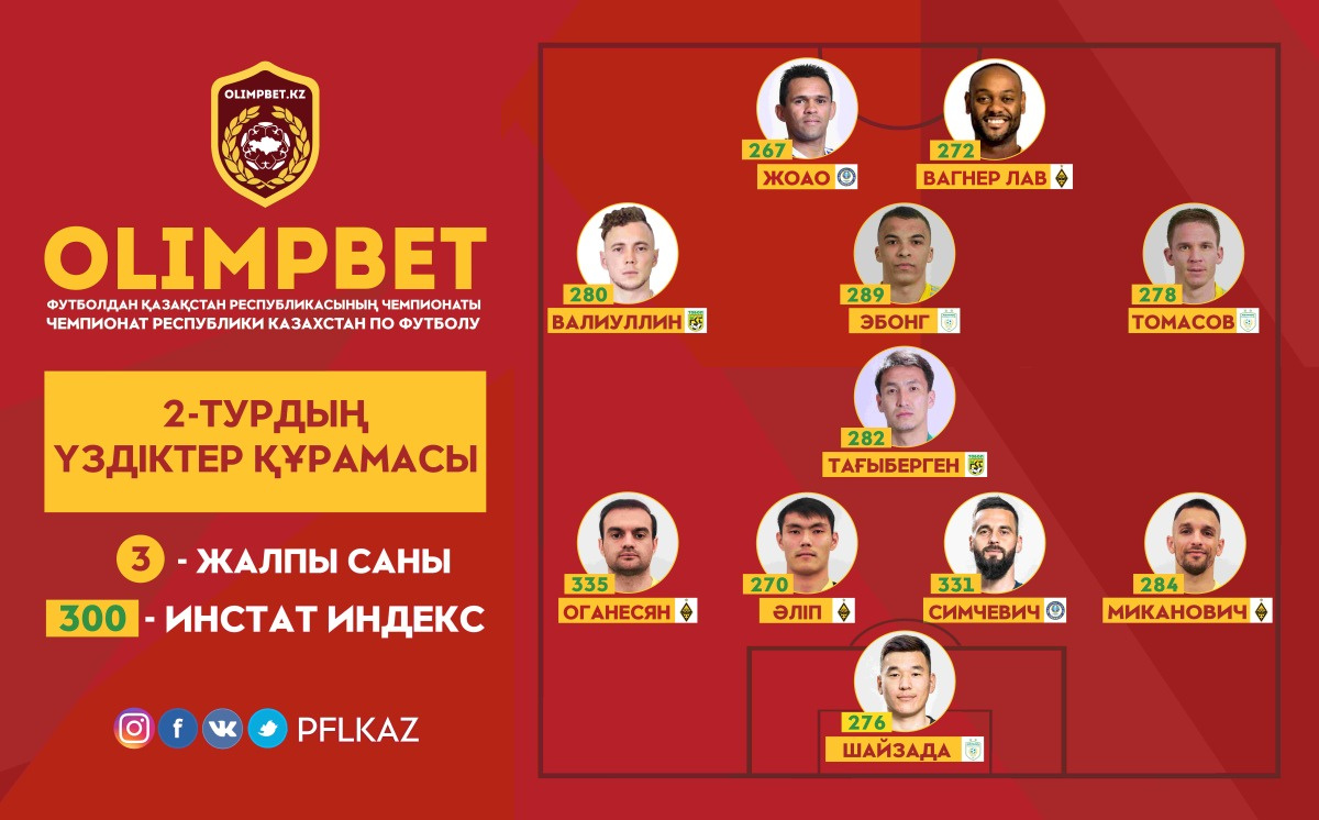 Нападающие: Жоао Пауло, «Ордабасы»; Вагнер Лав, «Кайрат»;