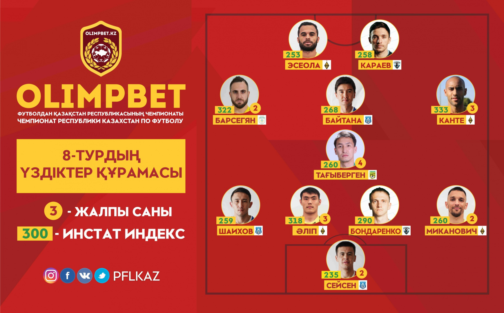 Нападающие: Адеринсола Эсеола, «Кайрат»; Давид Караев, «Каспий»;