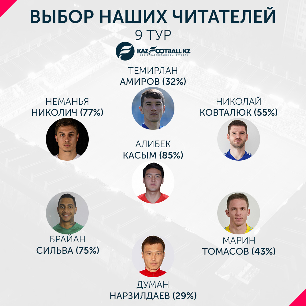 Читатели KazFootball.kz выбрали лучших игроков девятого тура Премьер-лиги