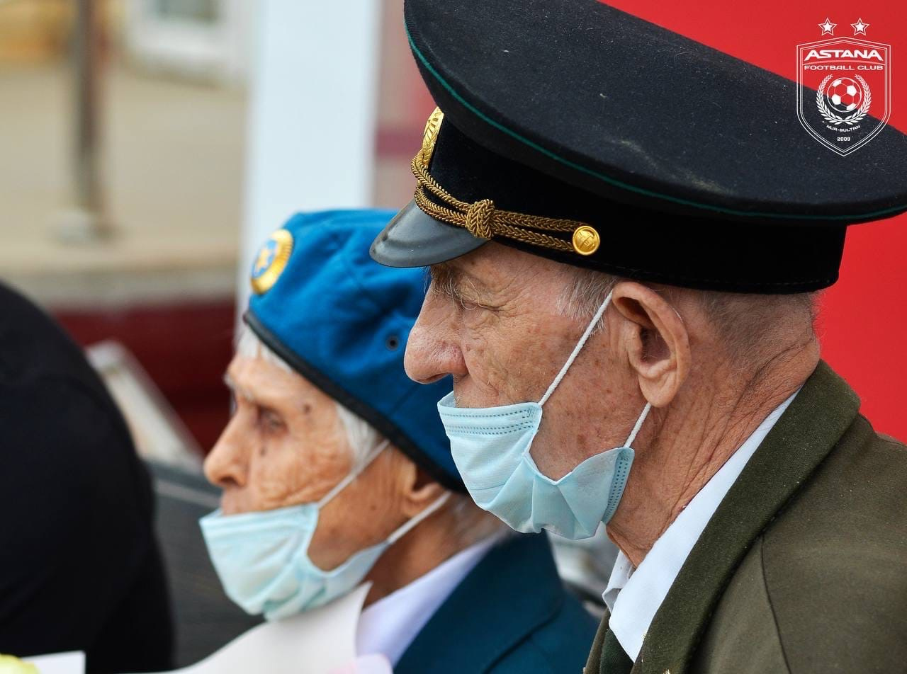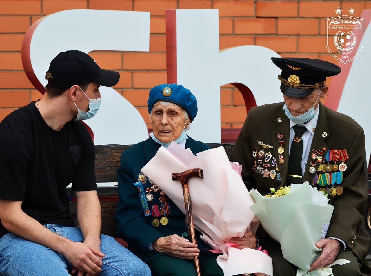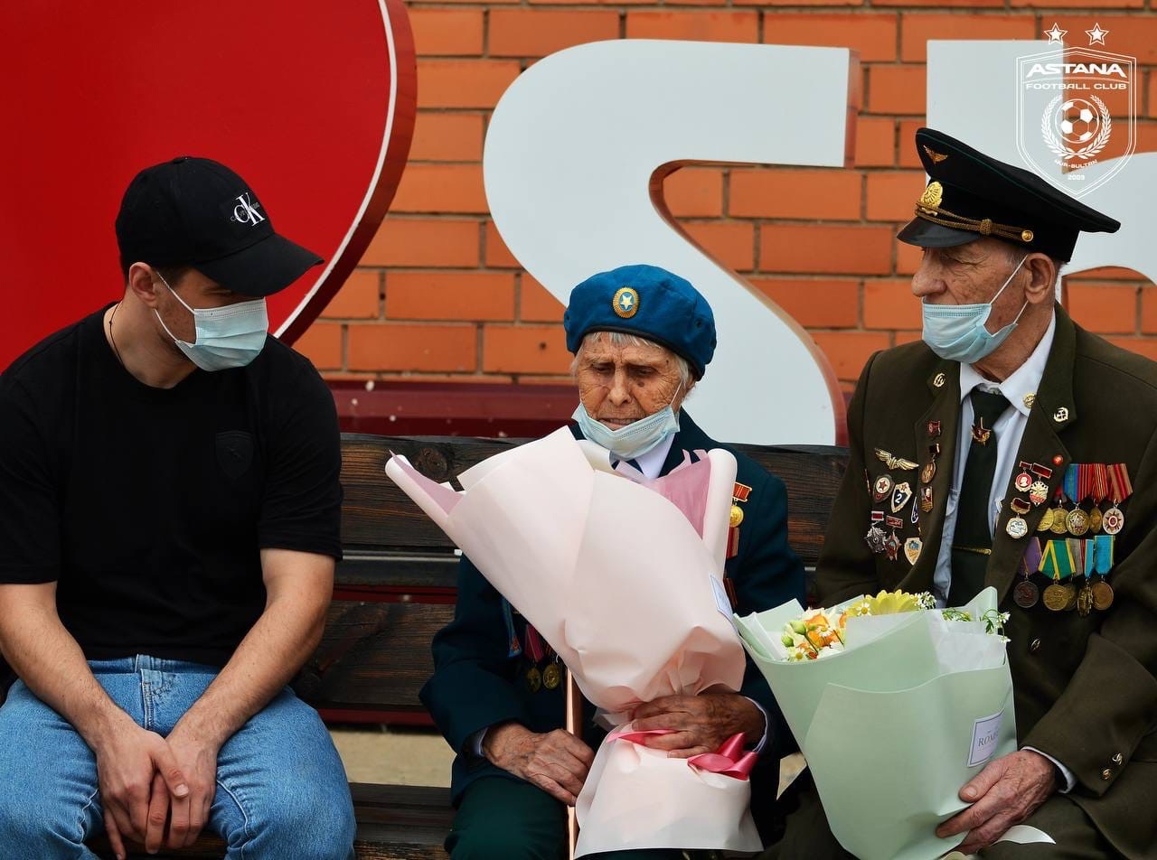 «В преддверии праздника Дня Победы в Великой Отечественной Войне, игроки основного состава «Астаны» Дмитрий Непогодов, Валерий Чуперка и Саги Совет посетили дом престарелых города Нур-Султан.