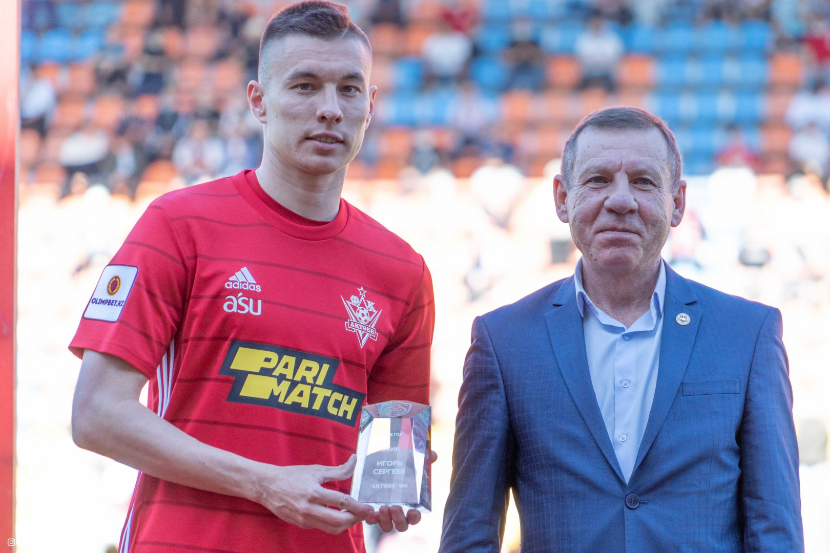 Заслуженную награду легионеру актюбинской команды вручил спортивный директор ПФЛК Павел Демян.