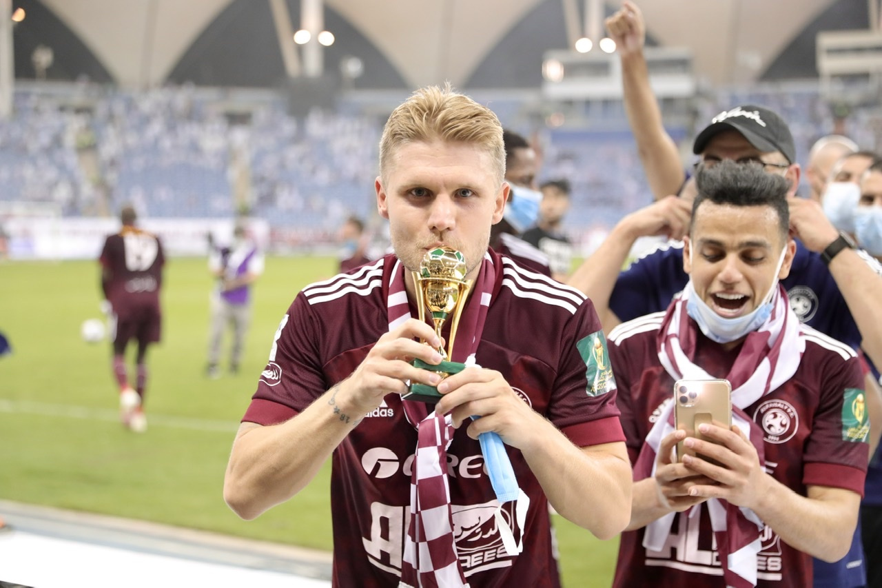 29-летний казахстанец с немецкими корнями Александр Меркель вышел в стартовом составе «Аль-Фейсали» и отыграл весь матч. Это его второй трофей в профессиональной карьере после выигранного чемпионства с «Миланом» в сезоне 2010/11.
