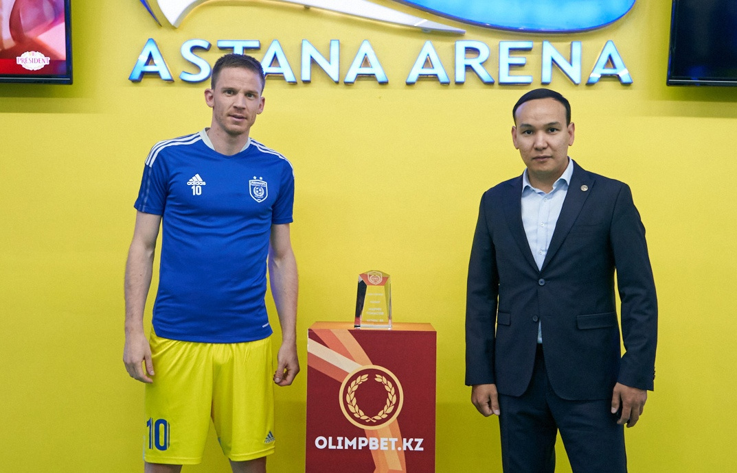 Награду Марину Томасову перед матчем 15-го тура Премьер-лиги «Астана» – «Тобол» вручил руководитель ПФЛК Олжас Абраев.