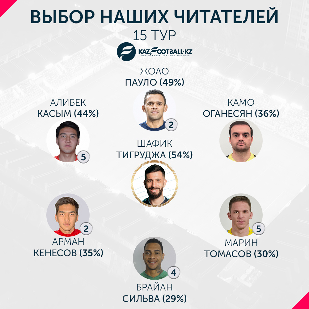 Читатели KazFootball.kz выбрали лучших игроков 15-го тура Премьер-лиги
