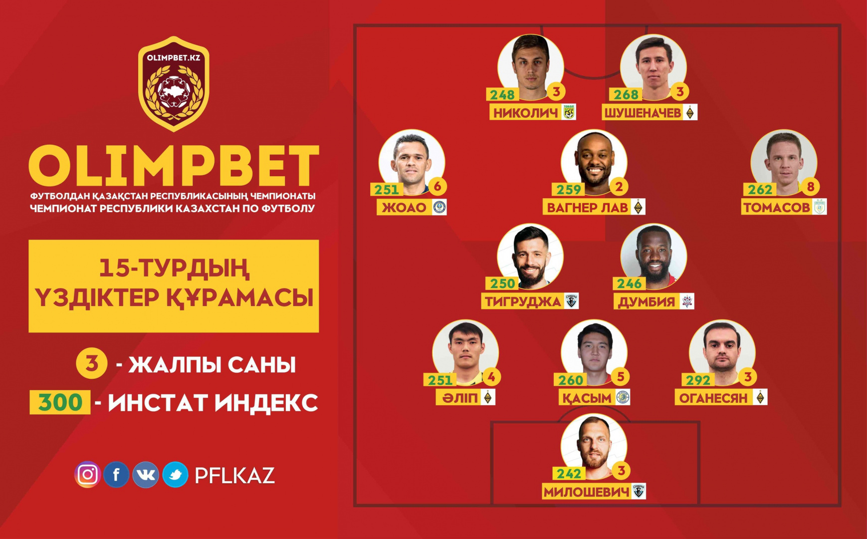 Команда тура была составлена на основе статистического анализа матчей от партнера ПФЛК – компании InStat. При формировании состава сборной учитывался не только общий индекс действий игроков, но и различные ключевые показатели, характерные для их позиций.