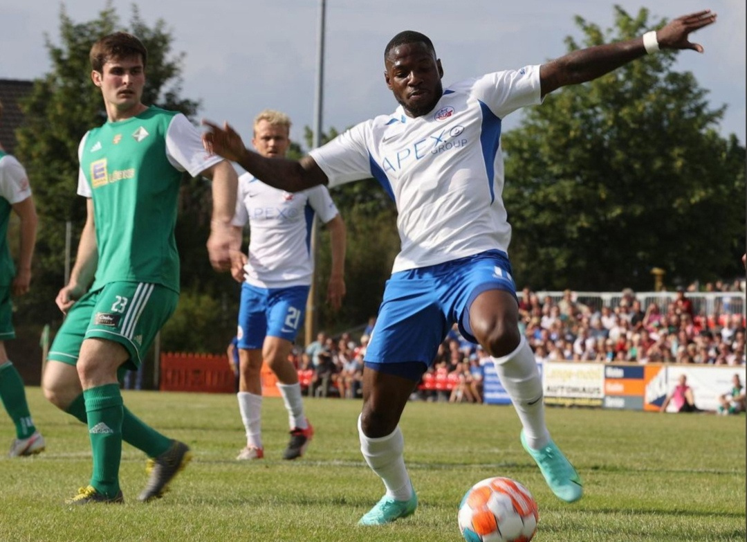 27-летний немецкий нападающий Штрели Мамба оформил хет-трик за «Ганзу» из города Росток в первом же матче за клуб.