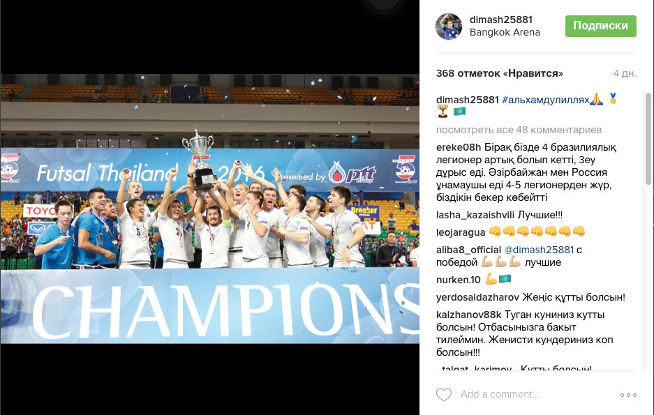Ниже представляем вашему вниманию обзор социальных сетей футзалистов, которые выступают в чемпионате Казахстана.