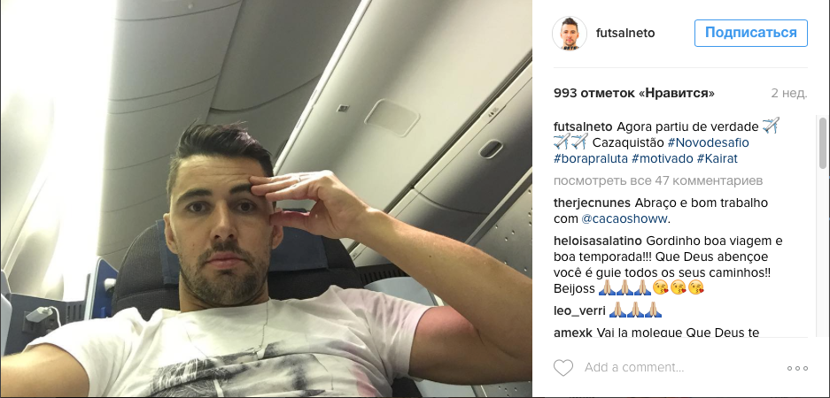 Нето, чемпион мира в составе Бразилии, совсем недавно прилетел в Алматы