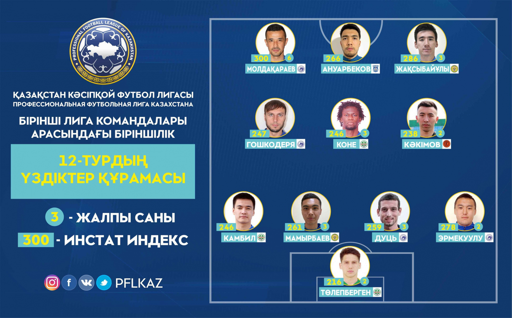 Команда тура была составлена на основе статистического анализа матчей от партнера ПФЛК – компании InStat. При формировании состава сборной учитывался не только общий индекс действий игроков, но и различные ключевые показатели, характерные для их позиций.