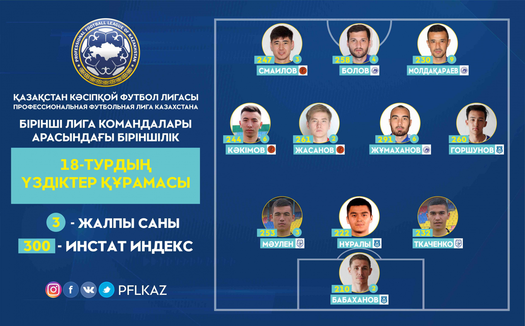 Команда тура была составлена на основе статистического анализа матчей от партнера ПФЛК – компании InStat. При формировании состава сборной учитывался не только общий индекс действий игроков, но и различные ключевые показатели, характерные для их позиций.