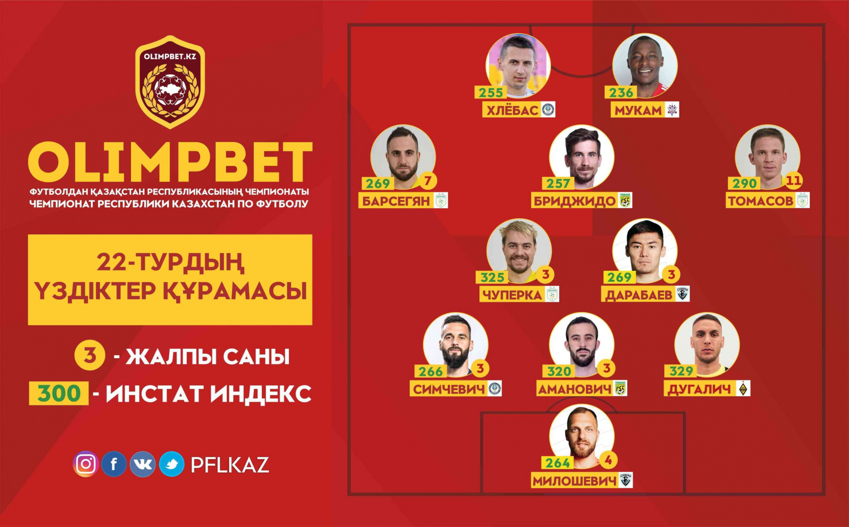 Центральные защитники: Раде Дугалич («Кайрат»), Алекса Аманович («Тобол»), Александр Симчевич («Ордабасы»);
